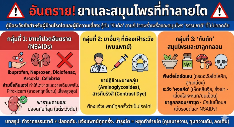 บทความนี้จะเจาะลึกถึงกลุ่มยาและสมุนไพรที่ผู้ป่วยโรคไตและผู้ที่มีความเสี่ยง "ต้อง" เฝ้าระวังเป็นพิเศษ